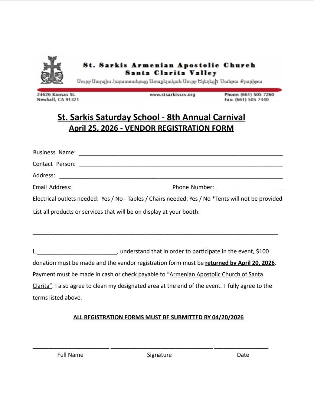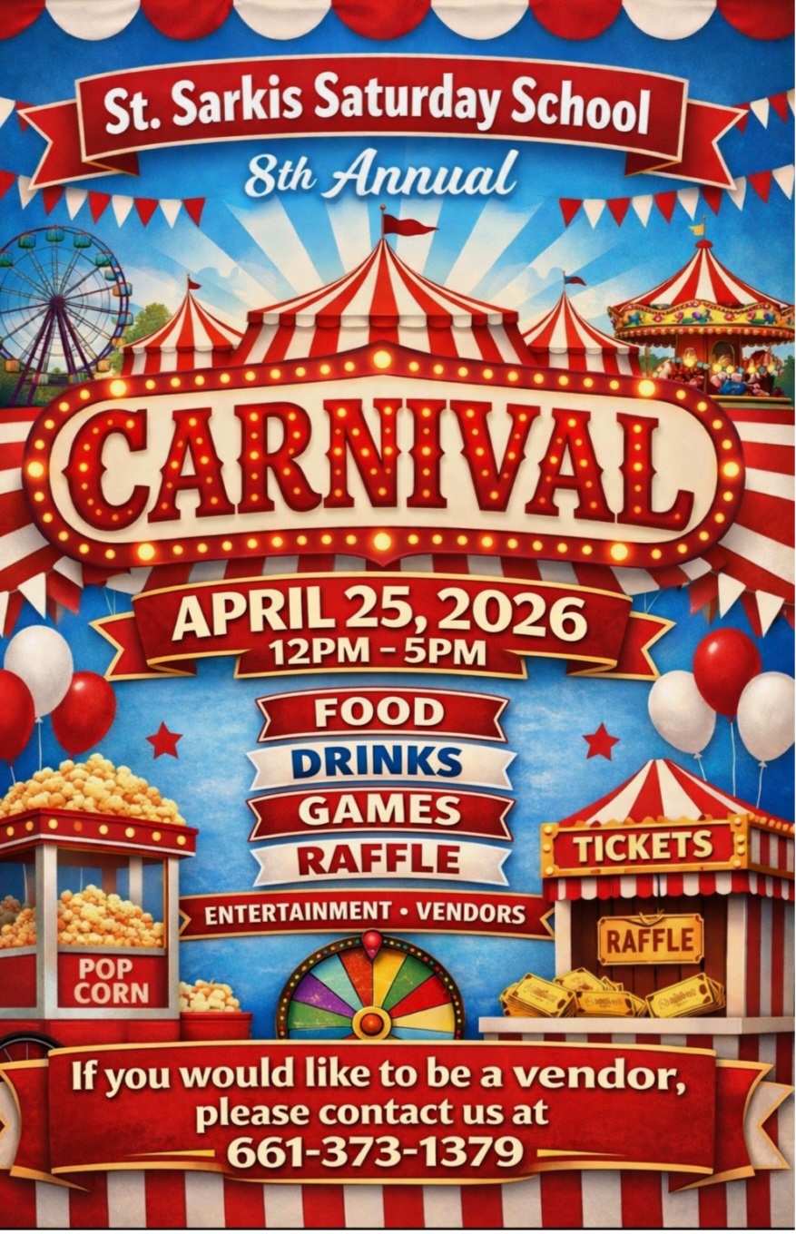 Saint Sarkis Carnival – April 25, 2026 – 12 Noon to 5 PM (click for details)